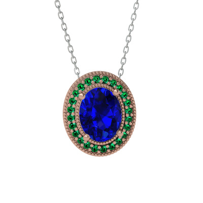 Lab safir ve yeşil kuvars 18 ayar rose altın kolye (40 cm beyaz altın rolo zincir)