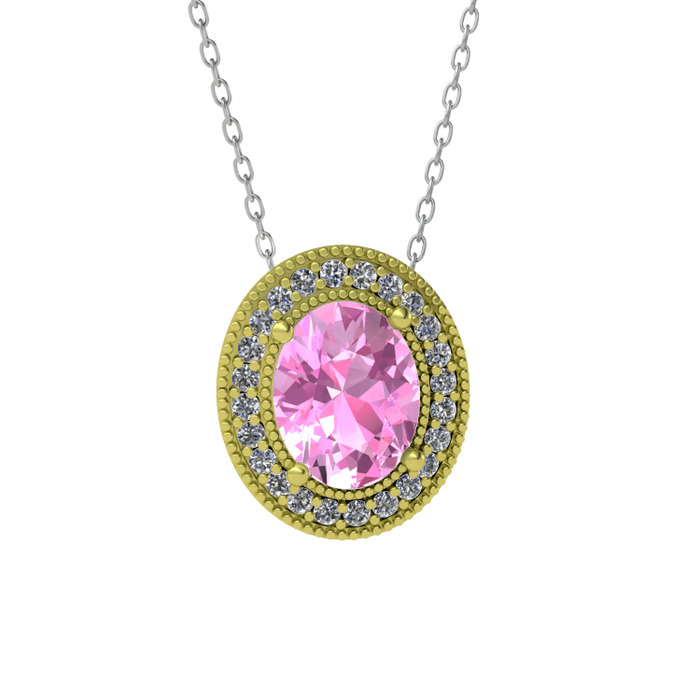 Pembe kuvars ve beyaz zirkon 18 ayar altın kolye (40 cm beyaz altın rolo zincir)