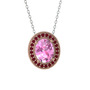 Pembe kuvars ve kök yakut 925 ayar rose altın kaplama gümüş kolye (40 cm gümüş rolo zincir)