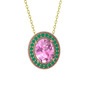 Pembe kuvars ve kök zümrüt 925 ayar rose altın kaplama gümüş kolye (40 cm altın rolo zincir)
