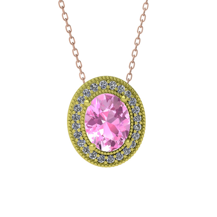 Pembe kuvars ve pırlanta 8 ayar altın kolye (0.264 karat, 40 cm gümüş rolo zincir)