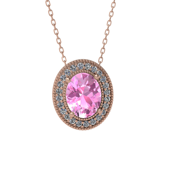 Pembe kuvars ve swarovski 14 ayar rose altın kolye (40 cm rose altın rolo zincir)