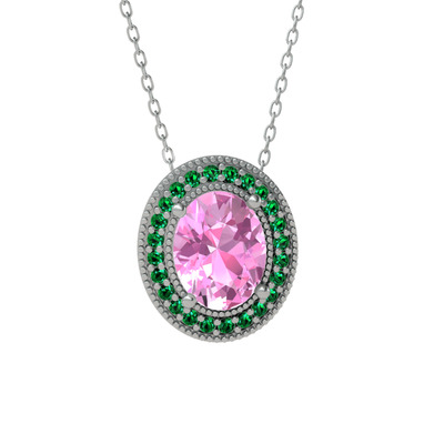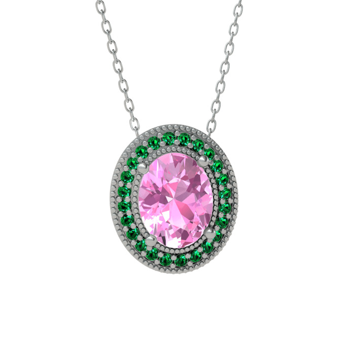 Pembe kuvars ve yeşil kuvars 18 ayar beyaz altın kolye (40 cm beyaz altın rolo zincir)