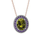 Peridot ve ametist 18 ayar beyaz altın kolye (40 cm rose altın rolo zincir)
