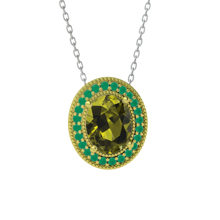 Peridot ve kök zümrüt 14 ayar altın kolye (40 cm beyaz altın rolo zincir)