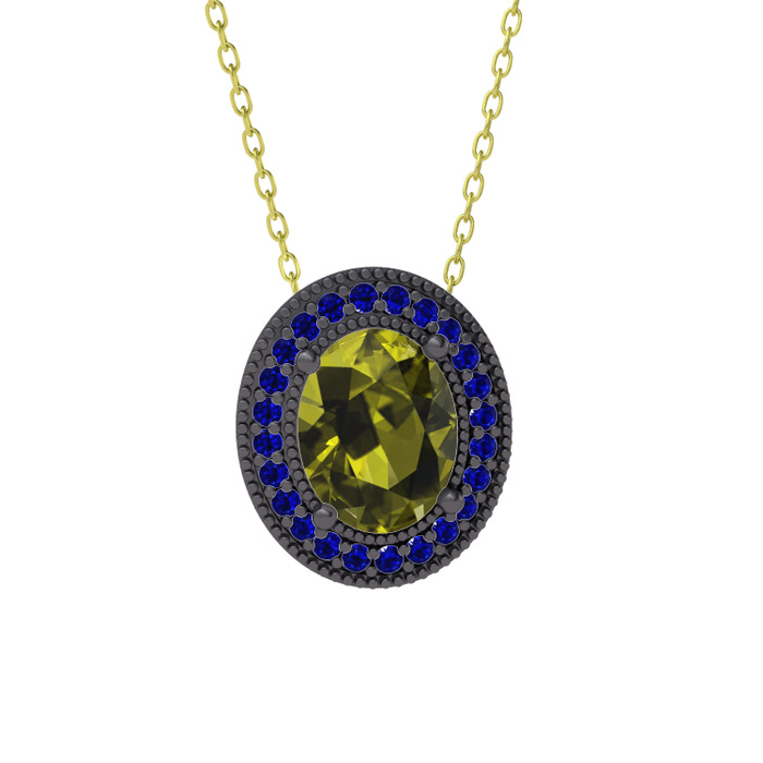 Peridot ve lab safir 925 ayar siyah rodyum kaplama gümüş kolye (40 cm gümüş rolo zincir)