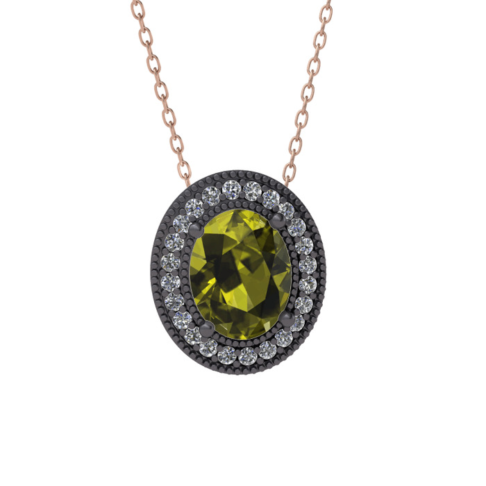 Peridot ve pırlanta 925 ayar siyah rodyum kaplama gümüş kolye (0.264 karat, 40 cm gümüş rolo zincir)