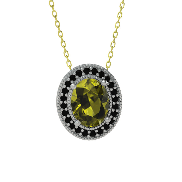 Peridot ve siyah zirkon 14 ayar beyaz altın kolye (40 cm gümüş rolo zincir)