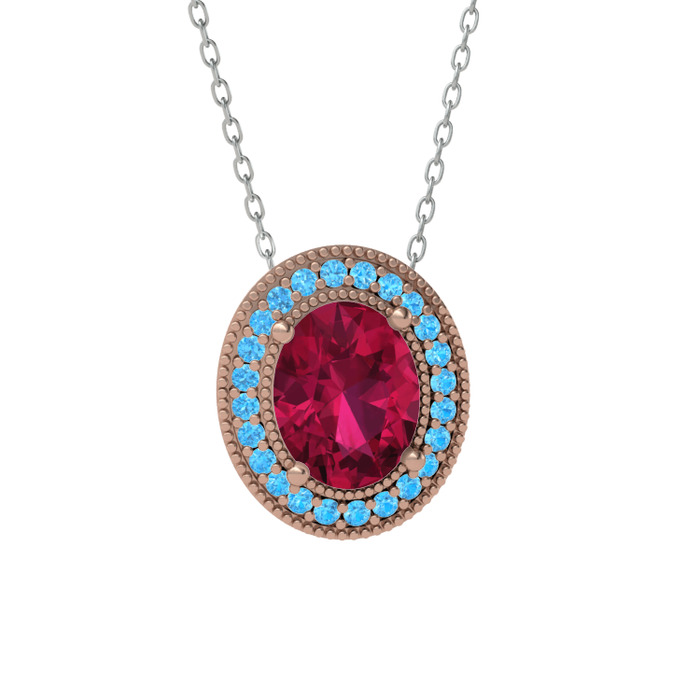 Rodolit garnet ve akuamarin 18 ayar rose altın kolye (40 cm beyaz altın rolo zincir)