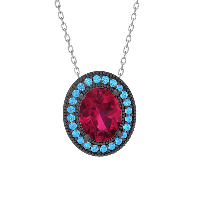 Rodolit garnet ve akuamarin 925 ayar siyah rodyum kaplama gümüş kolye (40 cm gümüş rolo zincir)
