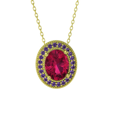 Rodolit garnet ve ametist 8 ayar altın kolye (40 cm gümüş rolo zincir)