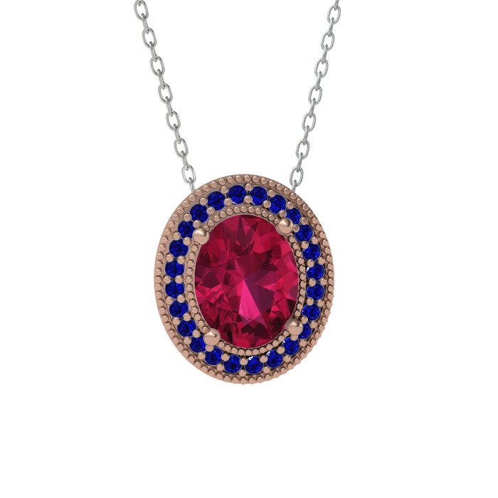 Rodolit garnet ve lab safir 14 ayar rose altın kolye (40 cm beyaz altın rolo zincir)