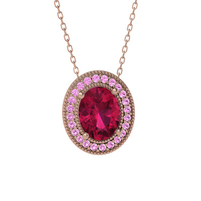 Rodolit garnet ve pembe kuvars 14 ayar rose altın kolye (40 cm gümüş rolo zincir)