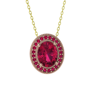 Rodolit garnet 925 ayar rose altın kaplama gümüş kolye (40 cm altın rolo zincir)