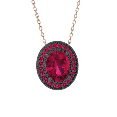 Rodolit garnet 925 ayar siyah rodyum kaplama gümüş kolye (40 cm rose altın rolo zincir)