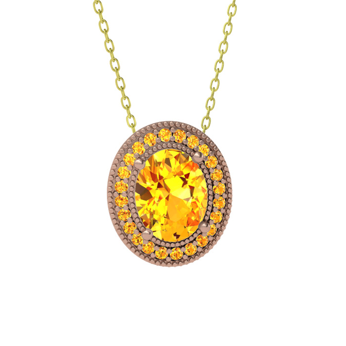 Sitrin 18 ayar rose altın kolye (40 cm altın rolo zincir)