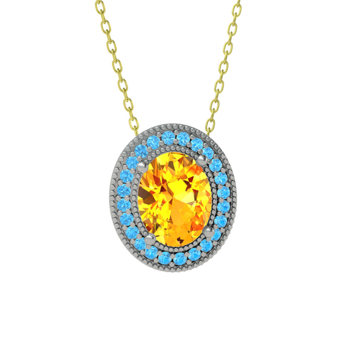Sitrin ve akuamarin 925 ayar gümüş kolye (40 cm gümüş rolo zincir)