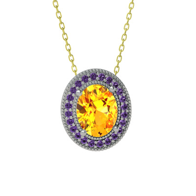 Sitrin ve ametist 14 ayar beyaz altın kolye (40 cm altın rolo zincir)