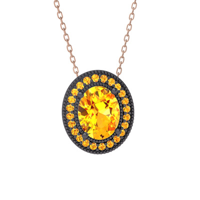 Sitrin 925 ayar siyah rodyum kaplama gümüş kolye (40 cm rose altın rolo zincir)