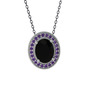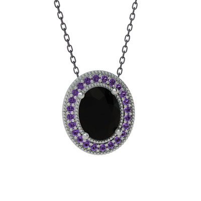 Siyah zirkon ve ametist 18 ayar beyaz altın kolye (40 cm gümüş rolo zincir)