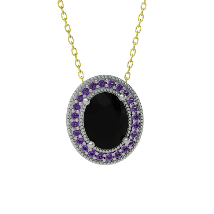 Siyah zirkon ve ametist 925 ayar gümüş kolye (40 cm gümüş rolo zincir)