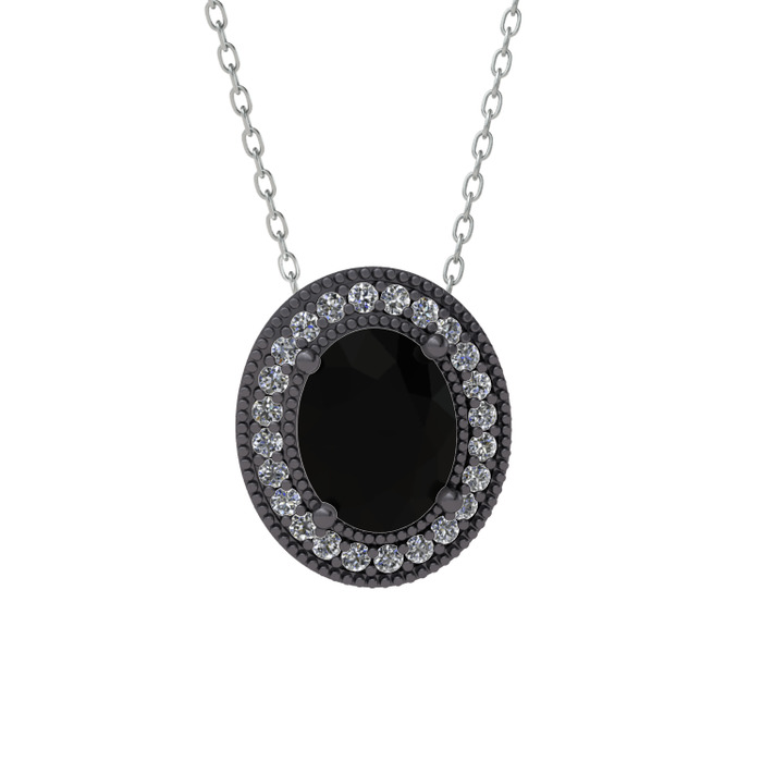 Siyah zirkon ve beyaz zirkon 925 ayar siyah rodyum kaplama gümüş kolye (40 cm beyaz altın rolo zincir)