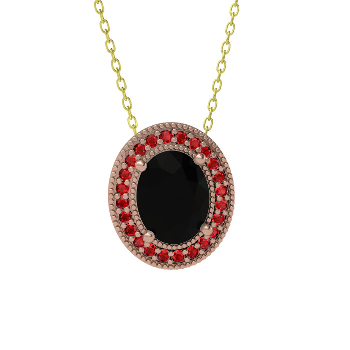 Siyah zirkon ve garnet 14 ayar rose altın kolye (40 cm altın rolo zincir)
