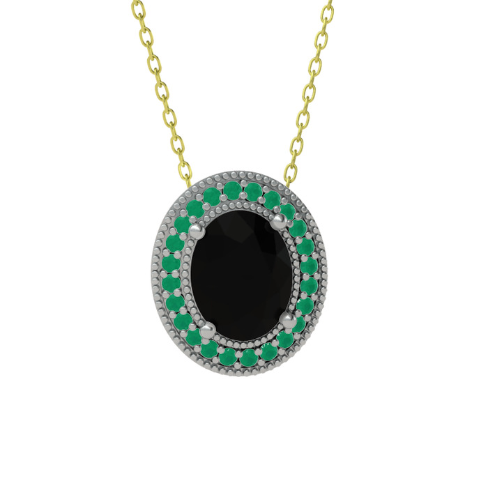 Siyah zirkon ve kök zümrüt 925 ayar gümüş kolye (40 cm gümüş rolo zincir)