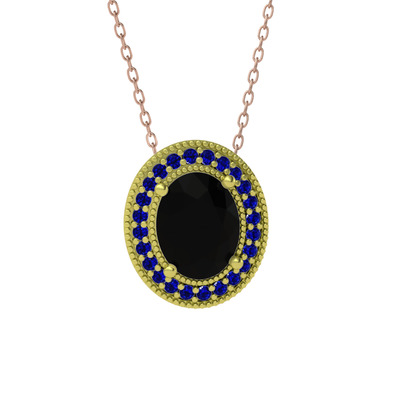 Siyah zirkon ve lab safir 18 ayar altın kolye (40 cm rose altın rolo zincir)