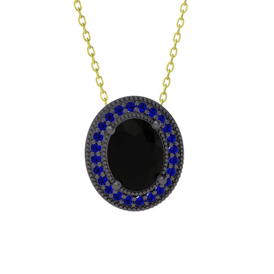 Siyah zirkon ve lab safir 925 ayar siyah rodyum kaplama gümüş kolye (40 cm gümüş rolo zincir)