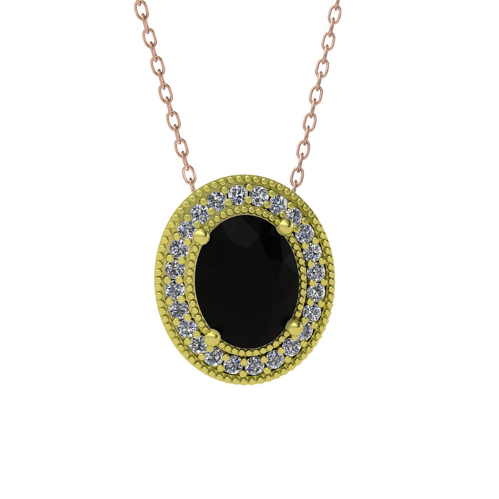 Siyah zirkon ve pırlanta 14 ayar altın kolye (0.264 karat, 40 cm rose altın rolo zincir)
