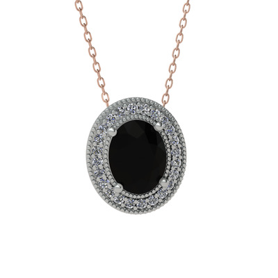 Siyah zirkon ve pırlanta 925 ayar gümüş kolye (0.264 karat, 40 cm rose altın rolo zincir)