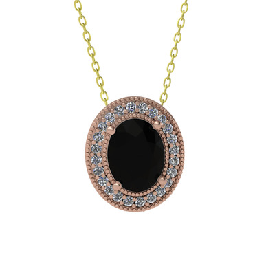 Siyah zirkon ve pırlanta 925 ayar rose altın kaplama gümüş kolye (0.264 karat, 40 cm gümüş rolo zincir)