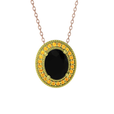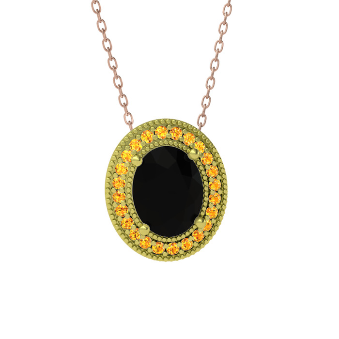 Siyah zirkon ve sitrin 925 ayar altın kaplama gümüş kolye (40 cm rose altın rolo zincir)