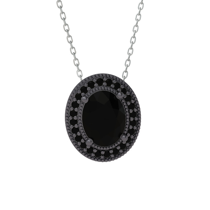 Siyah zirkon 925 ayar siyah rodyum kaplama gümüş kolye (40 cm beyaz altın rolo zincir)