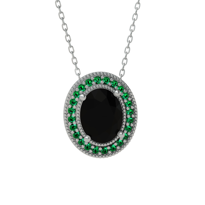 Siyah zirkon ve yeşil kuvars 18 ayar beyaz altın kolye (40 cm beyaz altın rolo zincir)