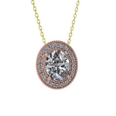Swarovski ve beyaz zirkon 14 ayar rose altın kolye (40 cm altın rolo zincir)