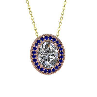 Swarovski ve lab safir 925 ayar rose altın kaplama gümüş kolye (40 cm altın rolo zincir)