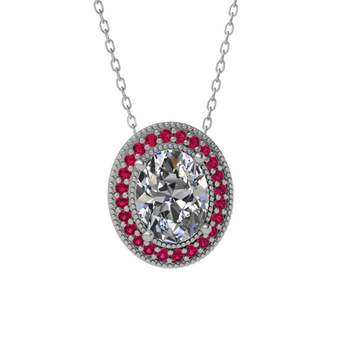 Swarovski ve rodolit garnet 8 ayar beyaz altın kolye (40 cm beyaz altın rolo zincir)