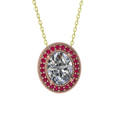 Swarovski ve rodolit garnet 925 ayar rose altın kaplama gümüş kolye (40 cm altın rolo zincir)