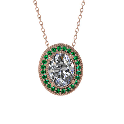 Swarovski ve yeşil kuvars 18 ayar rose altın kolye (40 cm rose altın rolo zincir)