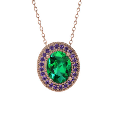 Yeşil kuvars ve ametist 18 ayar rose altın kolye (40 cm rose altın rolo zincir)