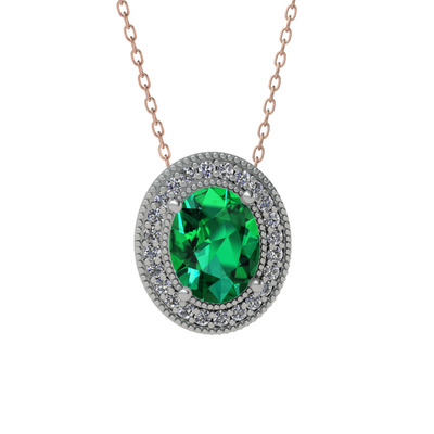 Yeşil kuvars ve beyaz zirkon 14 ayar beyaz altın kolye (40 cm rose altın rolo zincir)