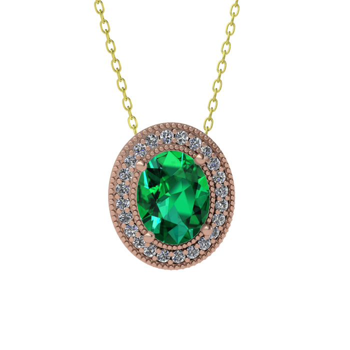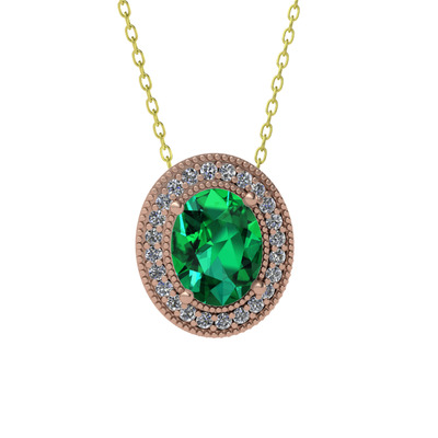 Yeşil kuvars ve pırlanta 925 ayar rose altın kaplama gümüş kolye (0.264 karat, 40 cm altın rolo zincir)