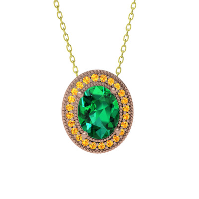 Yeşil kuvars ve sitrin 14 ayar rose altın kolye (40 cm altın rolo zincir)