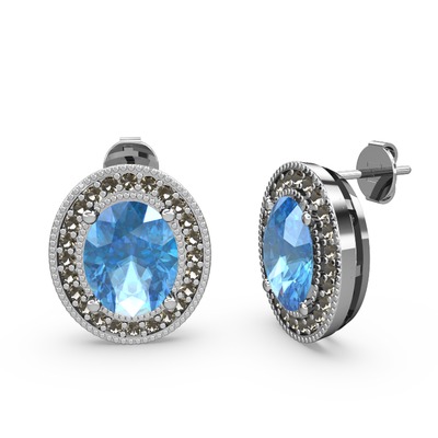 Akuamarin ve dumanlı kuvars 925 ayar gümüş küpe