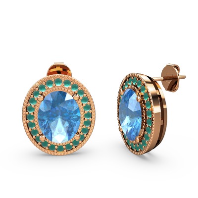 Akuamarin ve kök zümrüt 8 ayar rose altın küpe