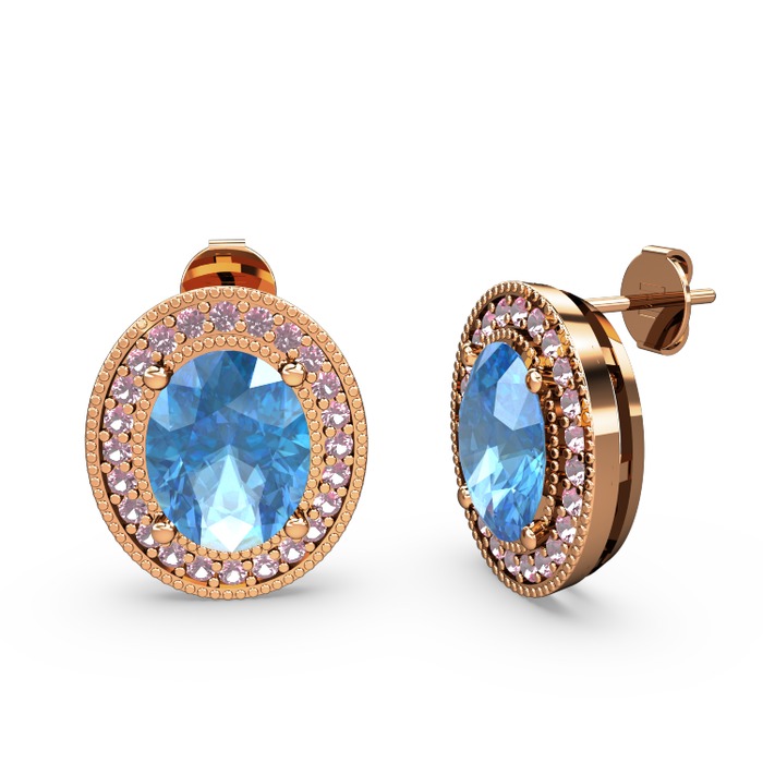 Akuamarin ve pembe kuvars 14 ayar rose altın küpe