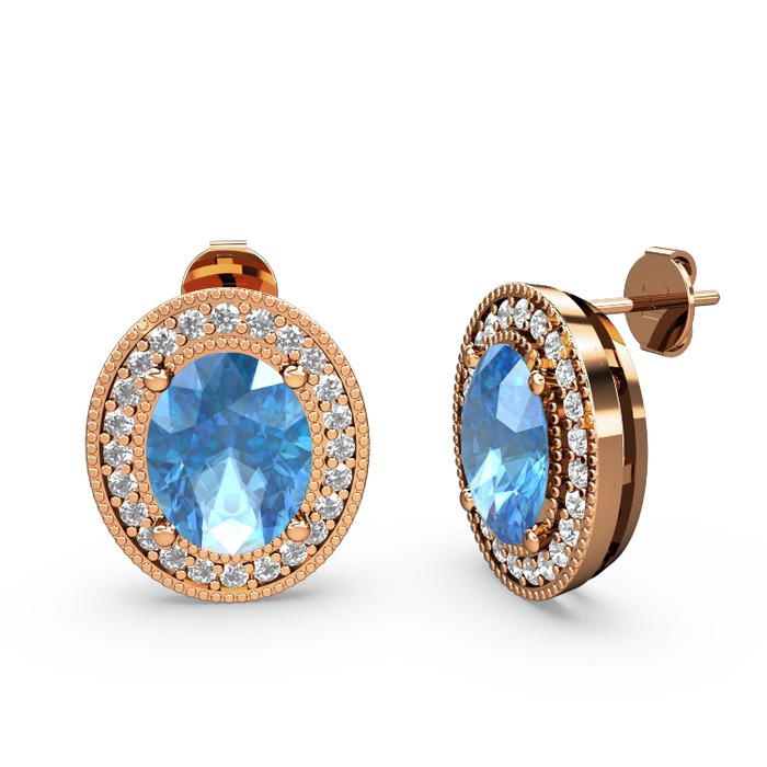 Akuamarin ve pırlanta 14 ayar rose altın küpe (0.528 karat)