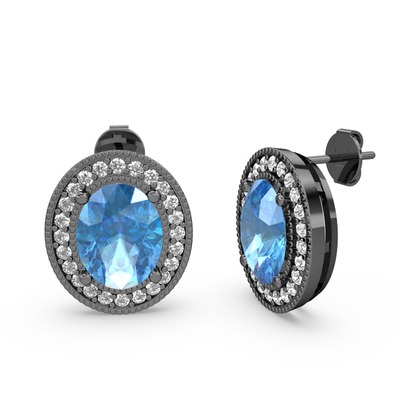 Akuamarin ve pırlanta 925 ayar siyah rodyum kaplama gümüş küpe (0.528 karat)
